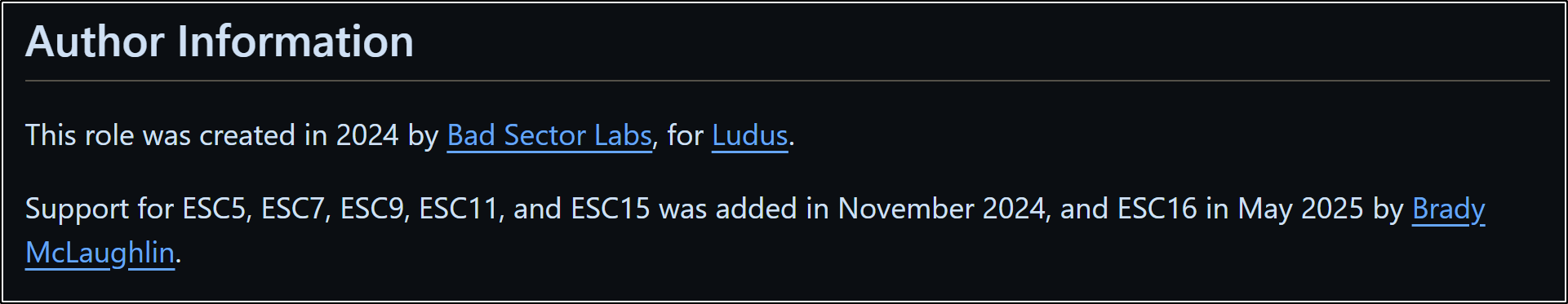 In May of 2025, my pull request to add support for ESC16 was approved. This made Ludus (to my knowledge) the first cyber range platform with support for the new escalation.