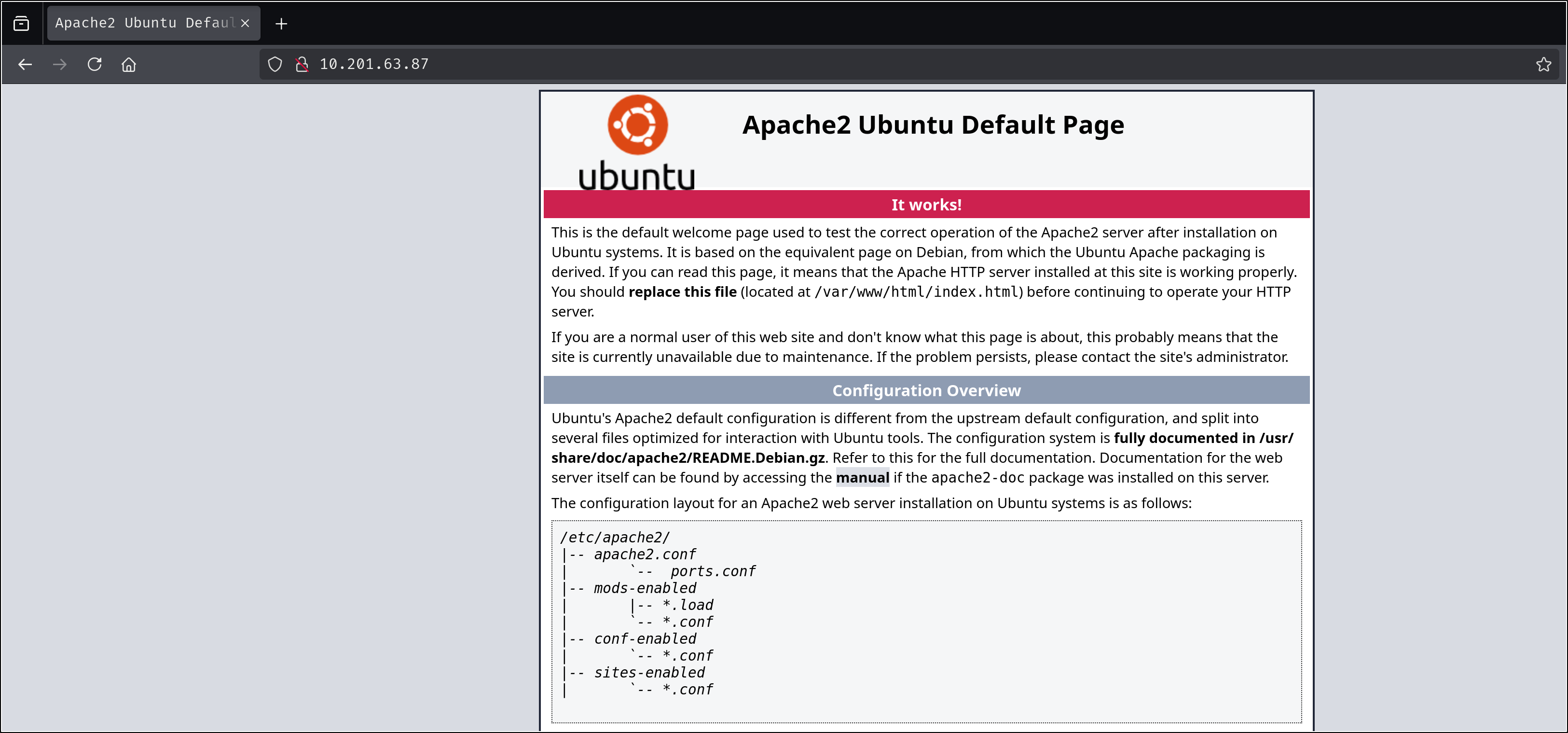 This is a default webpage, which is a common finding in labs and penetration tests alike. We can note information about the operating system and move on to fuzzing for hosted directories: