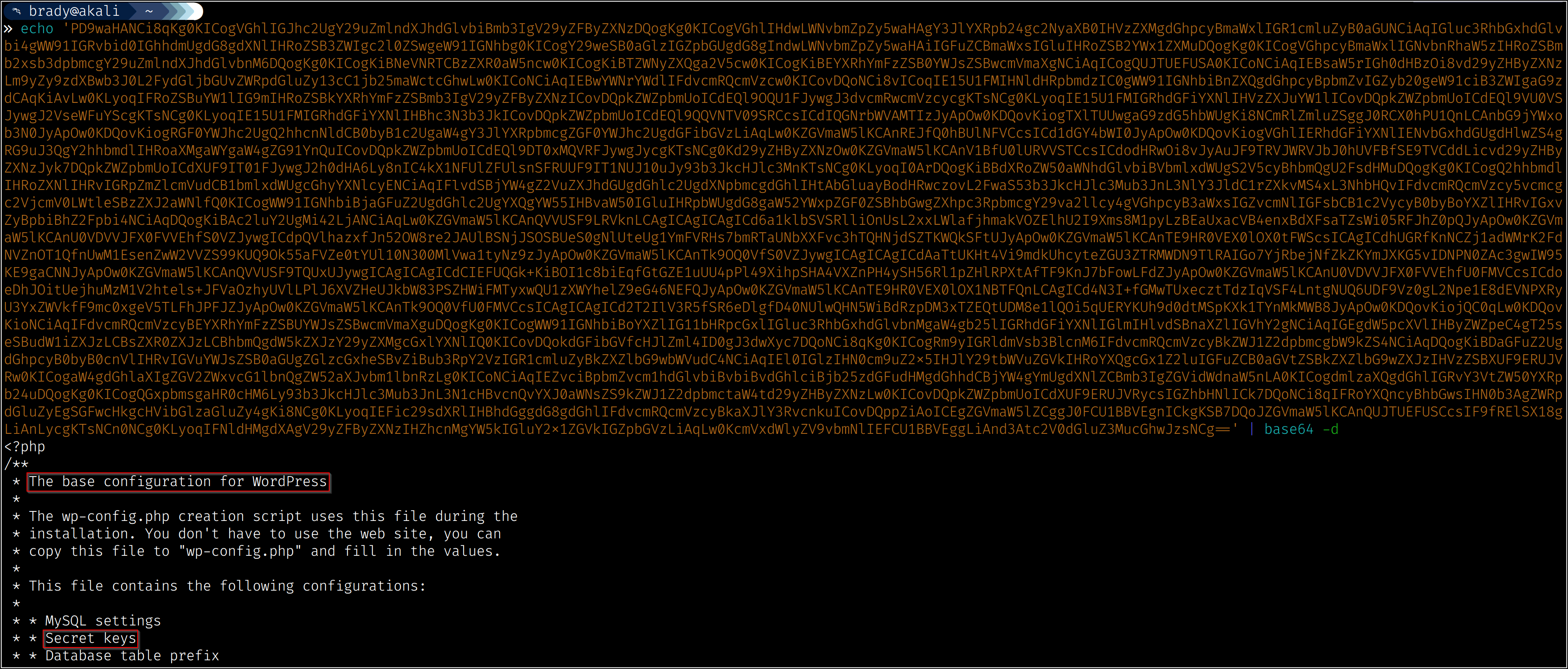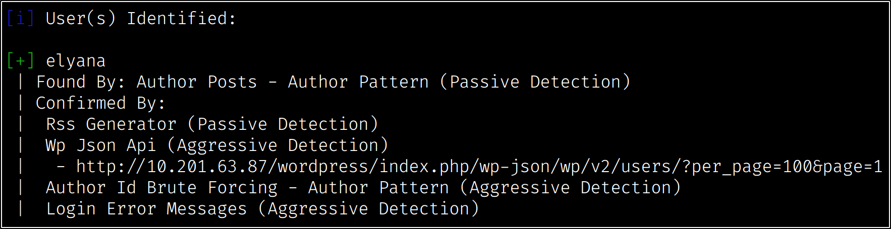 We can use this password; we would just need to know the username. We could brute-force a username with enough time, but since the name is a bit non-standard, it might take longer than we’d want to spend. Another route is that we could check our wpscan output for enumerated usernames: