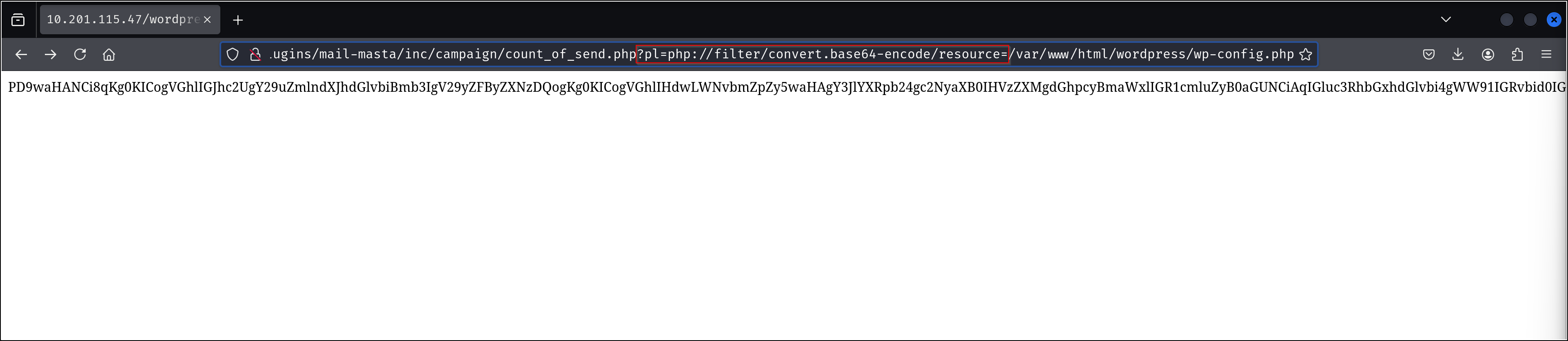We can see that there is a local file inclusion (LFI) on count_of_send.php, where we can use the “?pl” parameter to include a file from the victim’s operating system.