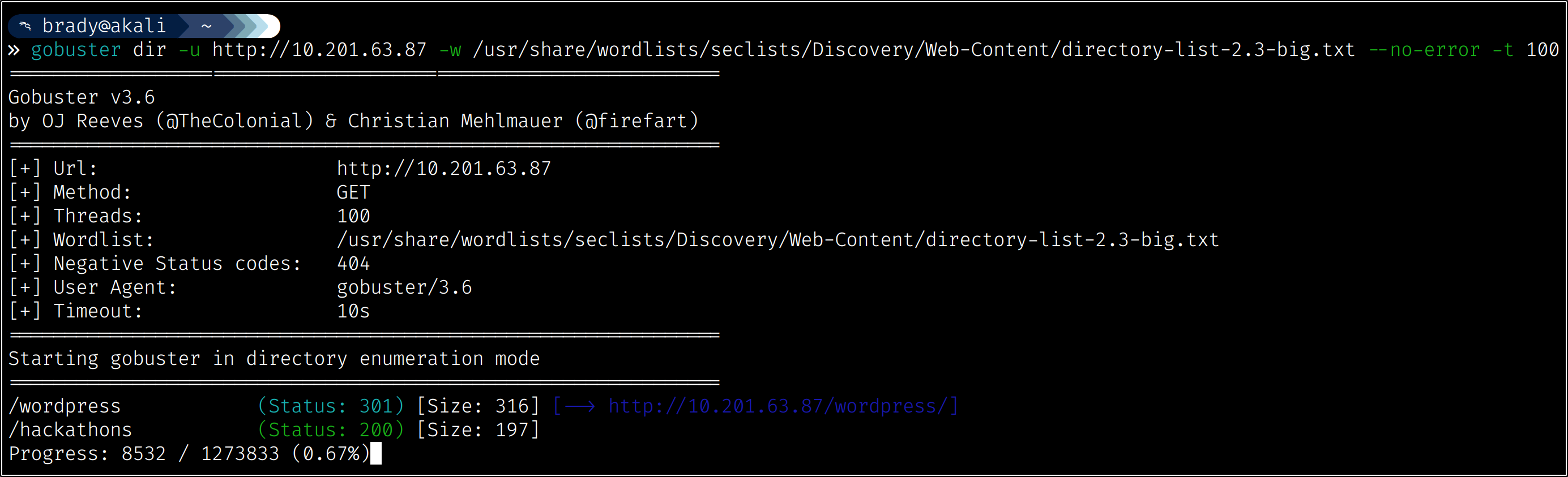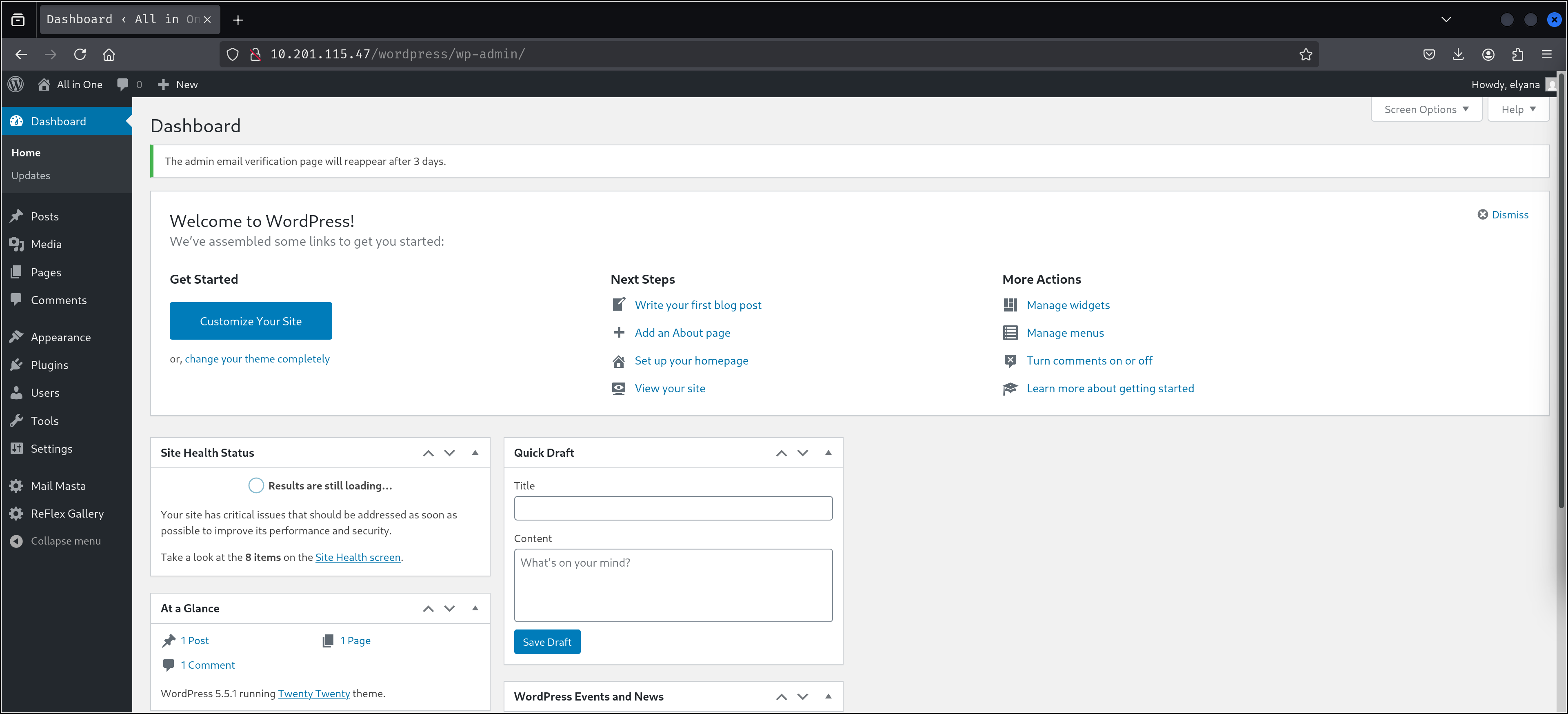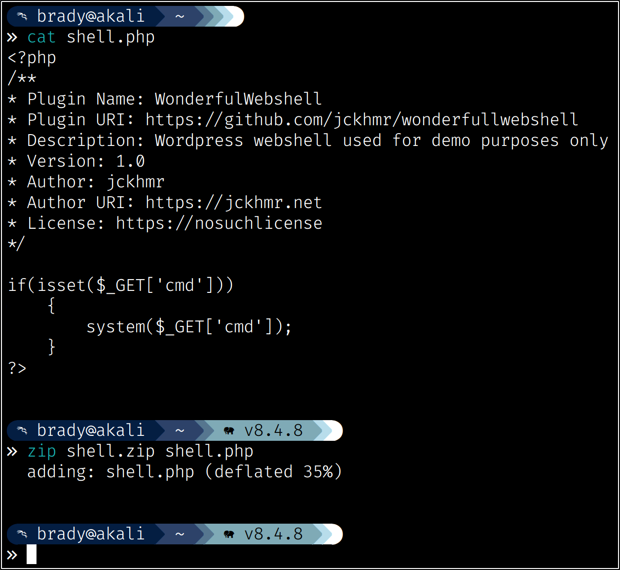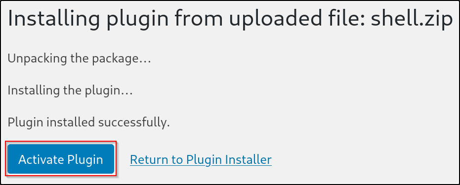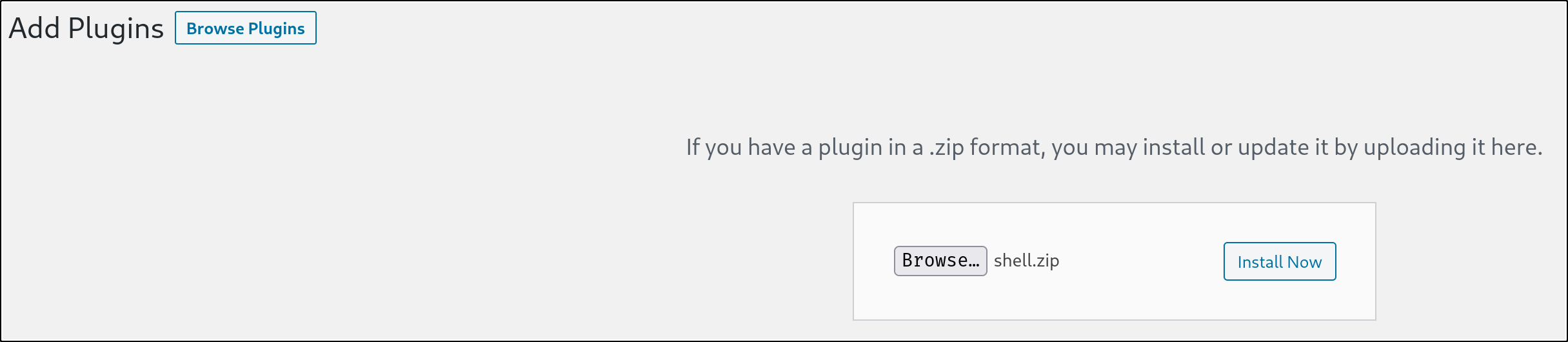 With administrative access to WordPress, we are able to gain remote code execution in several ways. The way I will show in this writeup is by uploading a webshell plugin.