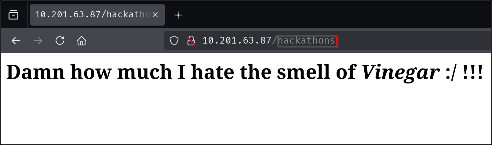 The more unique of these pages is “/hackathons,” which is a static HTML page with a cryptic message: