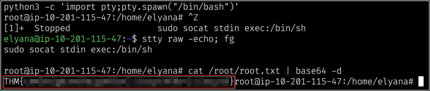 Optionally, as this is another unstable shell, we can stabilize using the same method as before. We can then read the root flag: