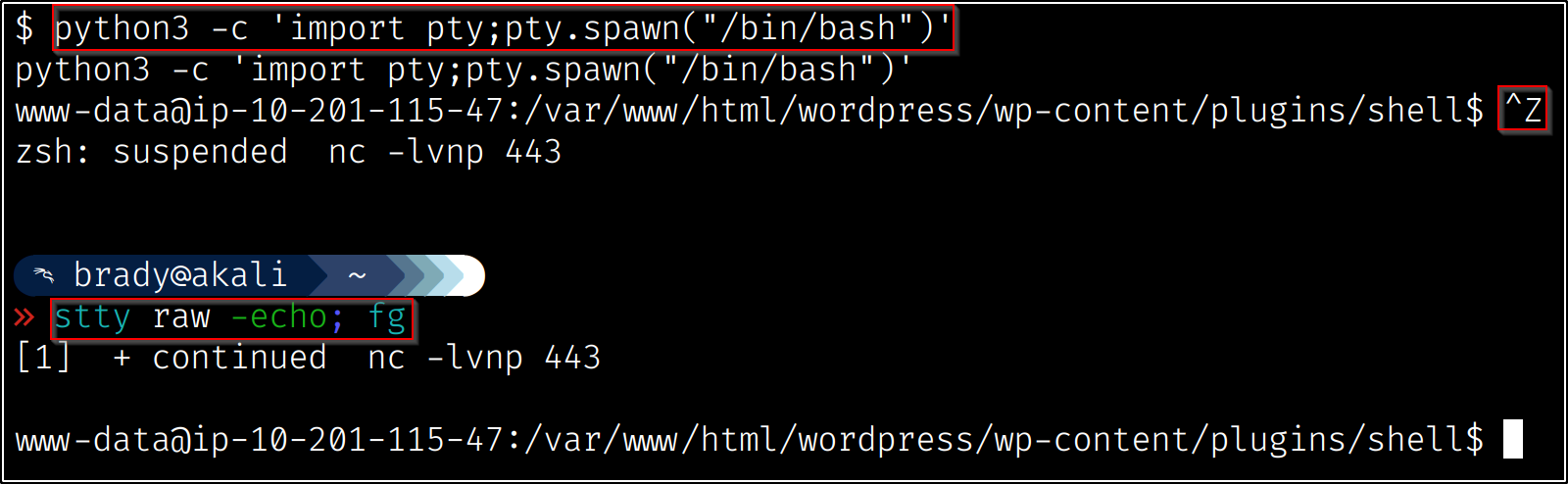 Now that we have an (unstable) reverse shell, we can stabilize using python3, which we already know that we have on this machine: