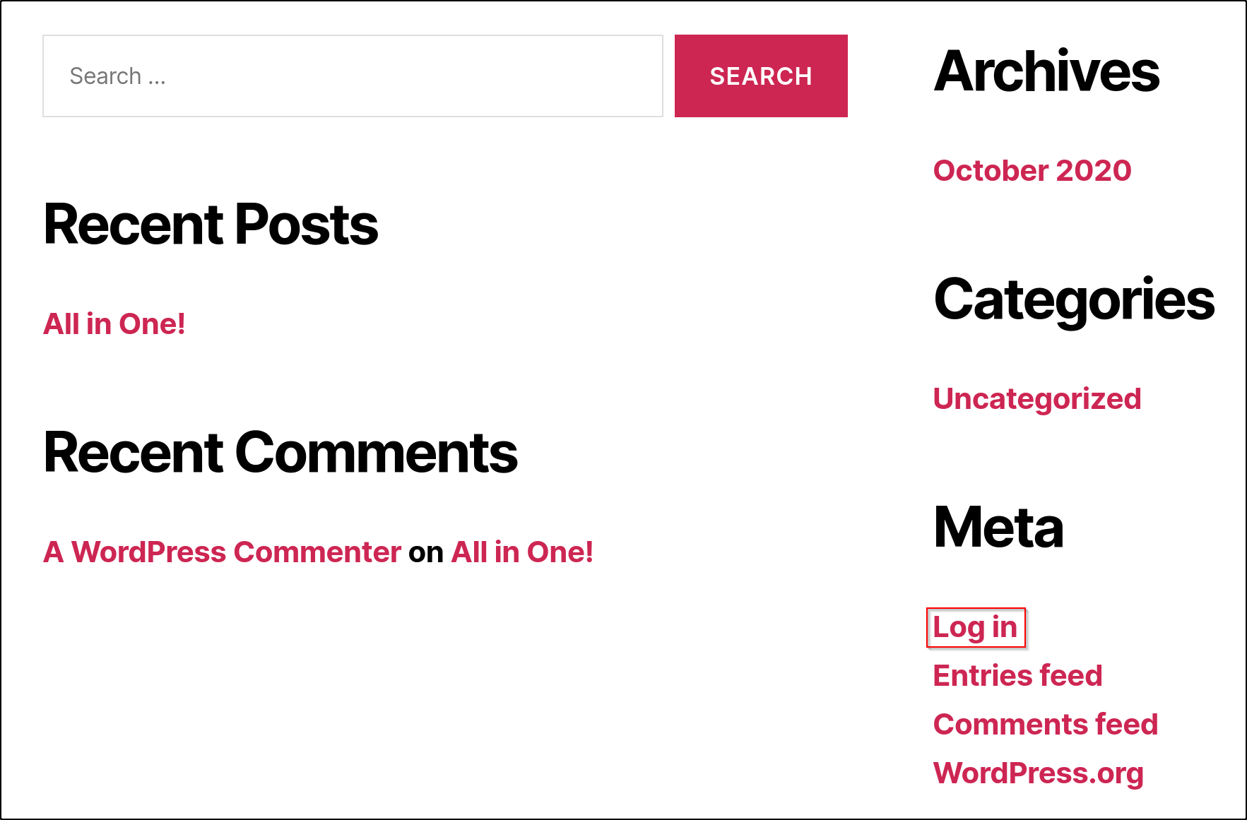The login link, in particular, will help us later. We are taken to the WordPress login page:
