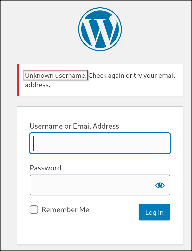 Something of interest on this login page is the fact that invalid usernames produce a unique error message. This means that we could find valid usernames by fuzzing for usernames that don’t produce this message: