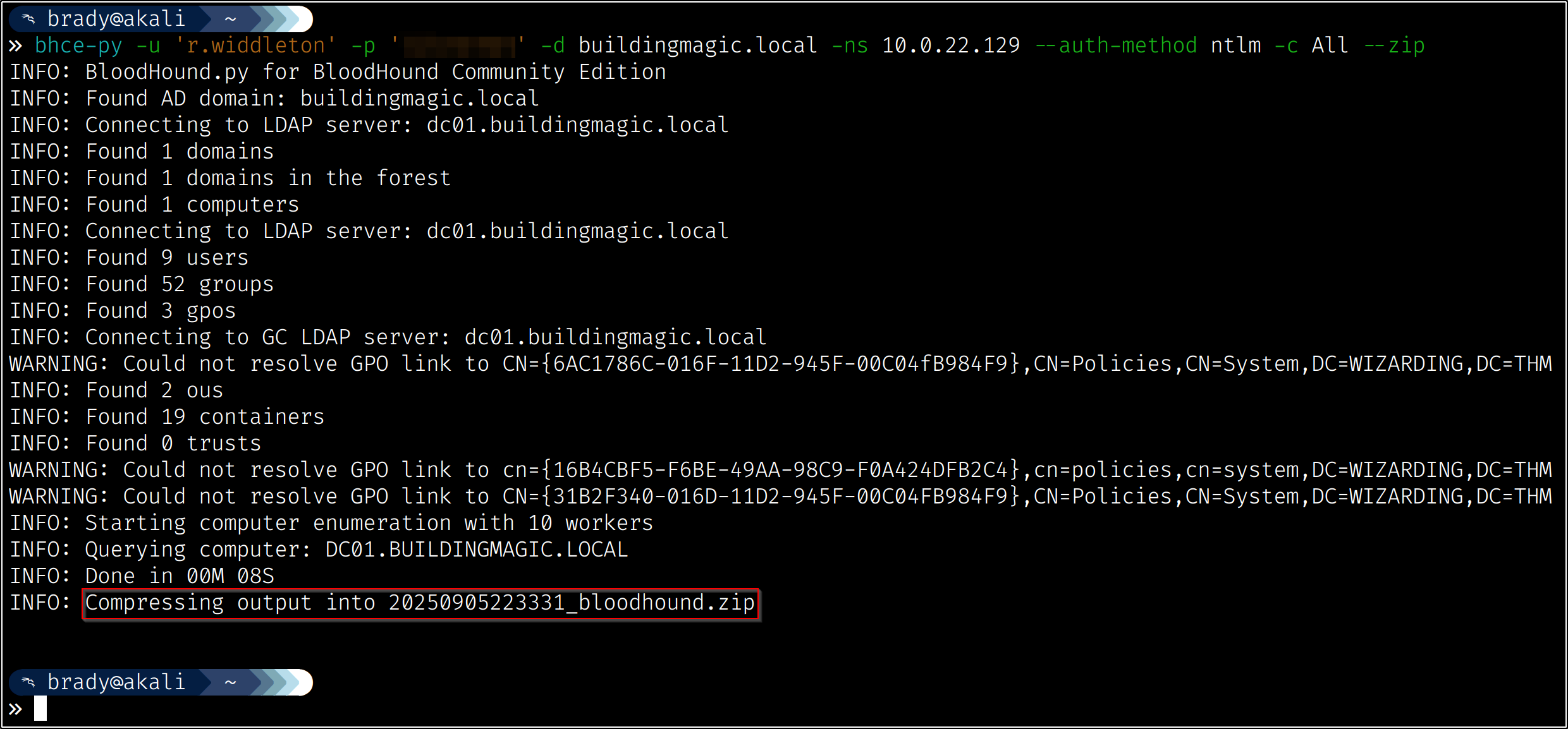 Now that we have valid domain user credentials, we can run a ‘BloodHound’ collector like ‘bloodhound-ce-python’: