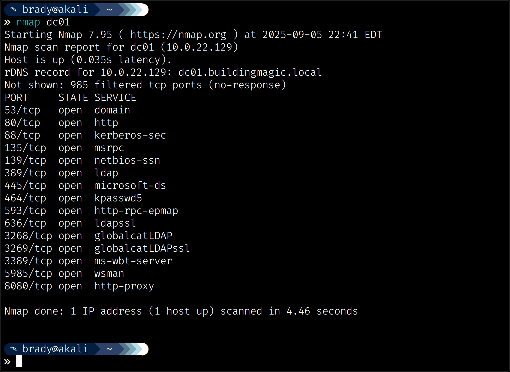 Next, I ran a quick nmap scan to see which ports were responding on the host: