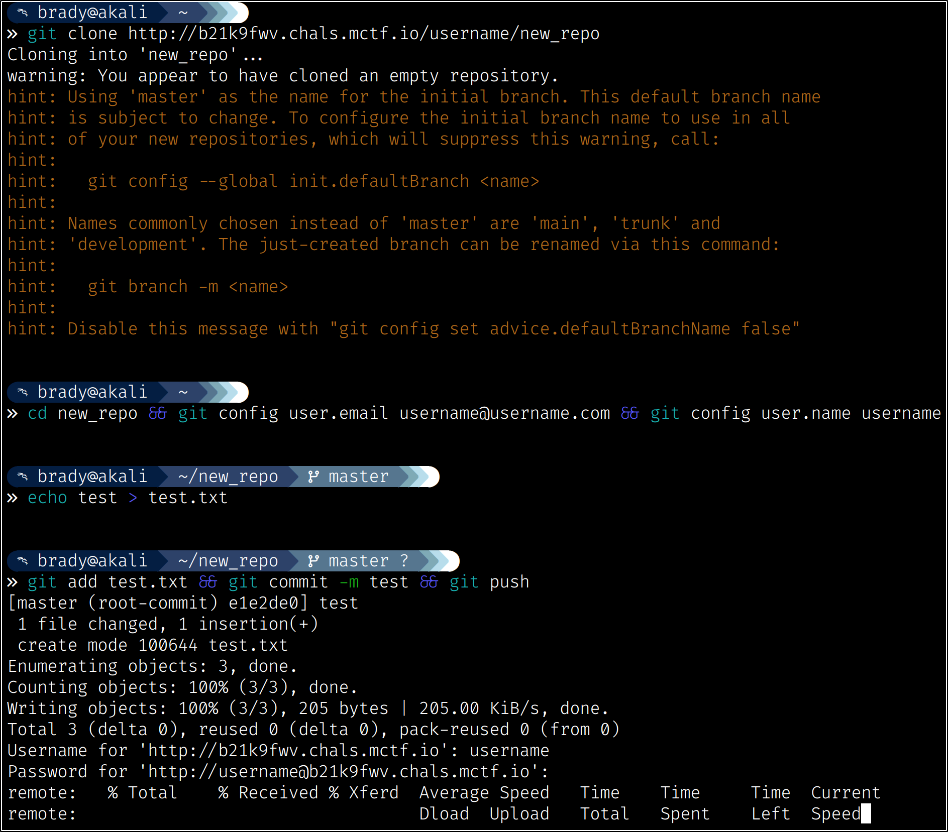 We can now clone the repo, make and commit a change, and push to master, which will trigger the “post-receive” git hook we weaponized: