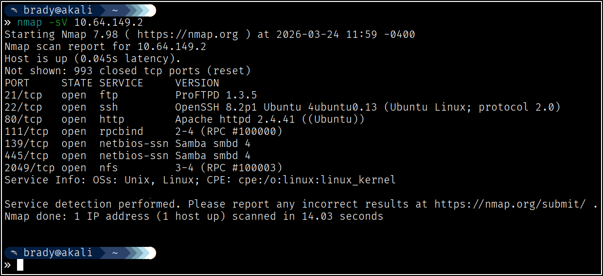 Next, I ran a quick nmap scan to enumerate the service versions:
