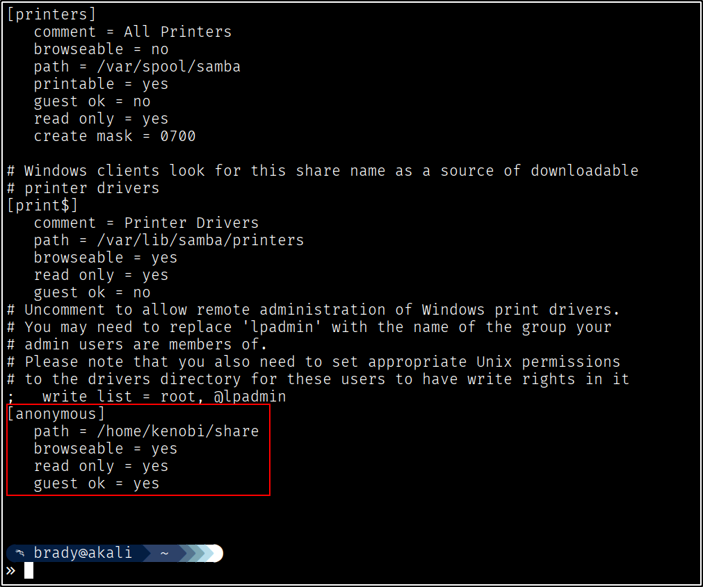 From later in the file, we also know the on-disk location of the “anonymous” share we were accessing via Samba earlier: