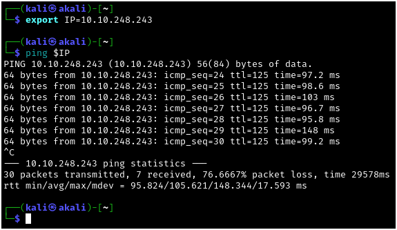 My first step was to export the box’s IP address to a variable that I could use easily for the rest of the engagement. This IP is going to change several times during this walkthrough, as this machine seems to become unresponsive after an hour, regardless of remaining lab time. Just note that there is only one machine, and we are always targeting the same machine regardless of different IPs you may see in this writeup.