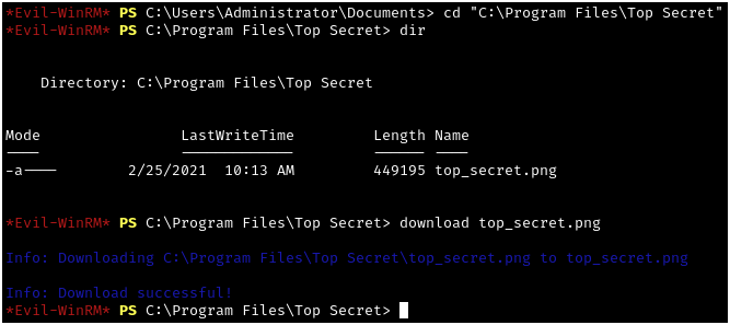 Note that the files are rather large, and downloading these in sequence like this will take quite a bit, so I’d recommend a second evil-winrm session to download them in parallel.