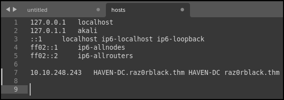 Now that we have the hostname saved in our /etc/hosts file, we can use it to interact with this IP address for the rest of the engagement.