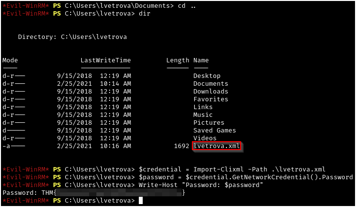 We can now extract this user’s flag from the PSCredential file as we did with the previous two users: