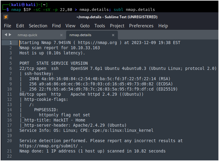 After that I wanted to further enumerate the service versions and run some basic nmap scripts against these ports: