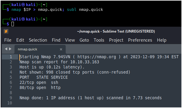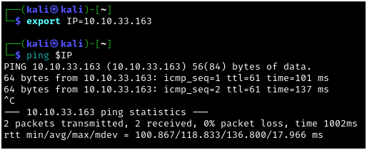 My first step was to export the box’s IP address to a variable that I could use easily for the rest of the engagement. Next I pinged the box to ensure that it was alive and ready for enumeration.