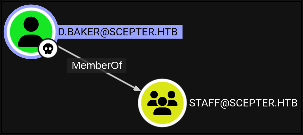 We can confirm in Bloodhound that d.baker is a member of the “Staff” group: