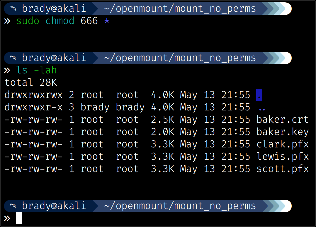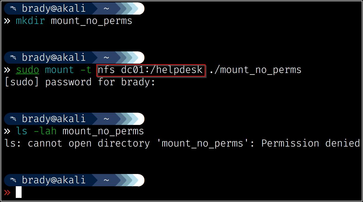 We can mount the NFS share, but it will have no permissions that we can use, as the permissions are still native to the share itself: